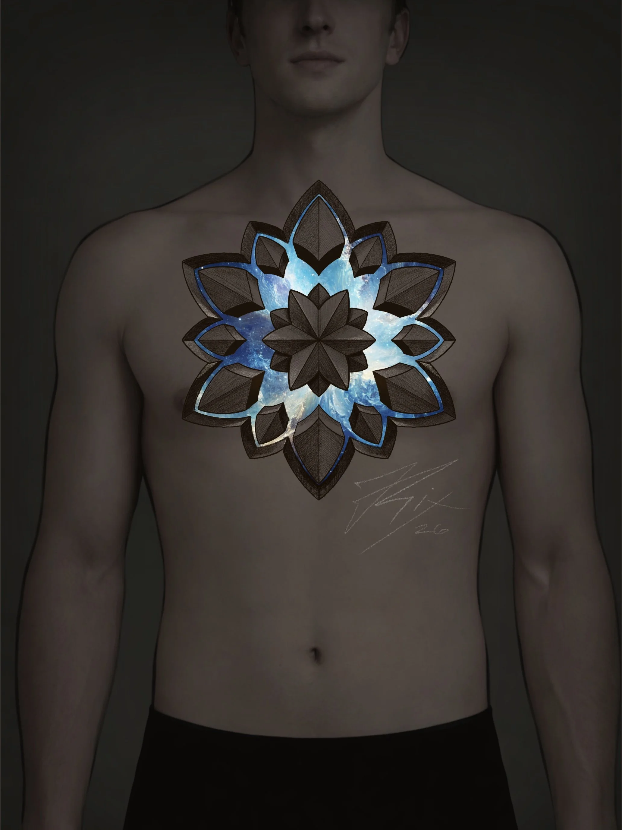 The STANDALONE mandalas can be done as single session pieces, such as on the forearm, calf, shin, etc., Or they can be enlarged to fit areas like the torso, back, or chest. They can have a solid black background like the images shown, or we can INCORPORATE color or galaxy elements.
